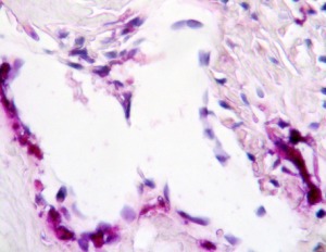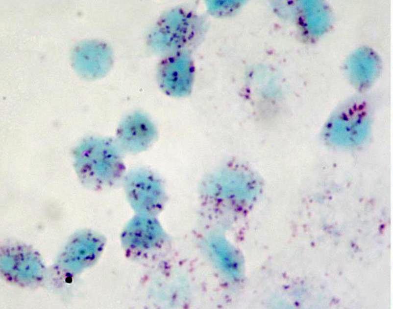 【染色結果】陽(yáng)性反應為鮮紅色或深紅色顆粒,定位胞漿。